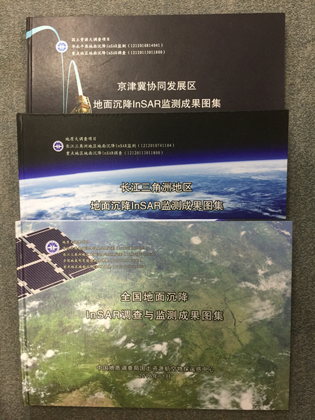 编制了《全国地面沉降InSAR调查与监测成果图集》、《京津冀协同发展区地面沉降InSAR监测成果图集》和《长三角地区地面InSAR监测成果图集》,揭示了地面沉降分布演化特征及主控因素,实现了全国层面与重点地区,重要城市与重点沉降区带等多尺度调查与监测,直接服务于全国地面沉降防治规划落实,全国地质环境承载能力评价,重要城市群地质环境保障以及全国重大工程规划布局等决策管理工作。