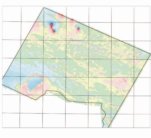 2013年测区编号航磁异常80处,其中新发现异常66处,地面查证发现3处具有找矿价值的异常。划分深大断裂12条,圈定较大的侵入岩体22处。 2014年测区航磁异常暂时编号31处,其中新发现异常29处,研究工作正在进行中。