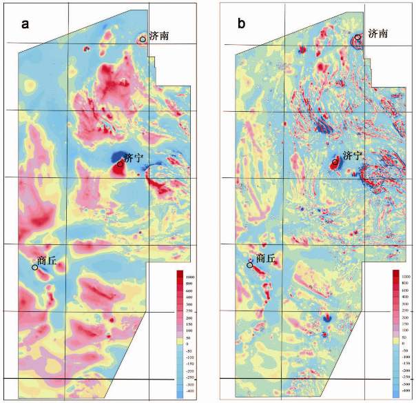 图1 鲁豫皖相邻地区航磁(a)及垂向一次导数图(b)