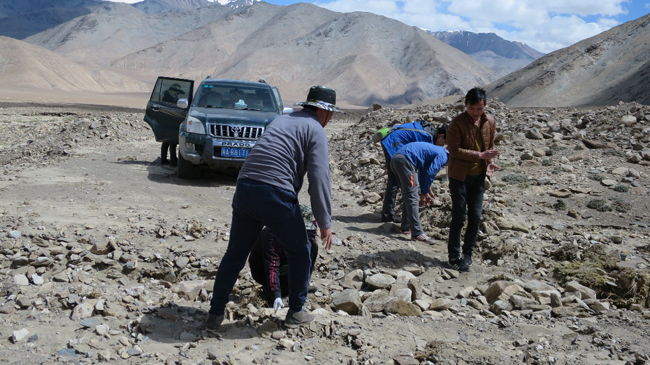 2015年工作区主要位于藏疆交界区域(西藏阿里地区北部和新疆和田地区南部)。全区最低海拔4025,最高海拔7451,平均海拔5392。大部分地区均为5000-6000米以上的高地,仅在工作区北部和东部地区地势较低,有些凹地和谷地存在。工作区交通不便,自然条件恶劣,工作期间区内天气变化无常,在山上不时会遇到大雨、冰雹和降雪;但项目组成员本着“求真、奉献、创新、图强”的航遥精神,克服了工作中遇到的多种困难,最终安全顺利地完成了野外工作计划。在本次野外工作中,项目组共完成野外调查路线近3000km,观测记录野外调查点位91个,采集岩石标本样品21件。