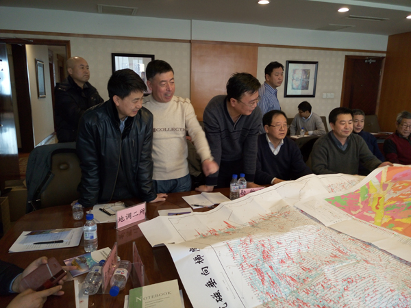 会议由吉林省地质勘查基金管理中心主任郝长河同志主持,郝主任首先感谢航遥中心对吉林省地质勘查工作的大力支持,并对加快航空物探测量资料成果转化提出了建议;陈斌、范正国教授感谢吉林省勘查基金管理中心提供这次研讨机会,并分别就加强航空物探资料成果服务,特别是加强地面异常查证工作、突出地质找矿效果提出了建议。会上,谢汝宽工程师和郭华高工分别就磐石地区1:5万航磁梯度及伽马能谱测量资料成果和初步解释结果进行了简要的汇报。与会单位分别就本区的地质构造、矿产与航空物探测量结果进行有针对性的研讨,获得了一些新的认识。最后,郝主任对此次航遥中心提供的高精度航空物探测量资料成果给予了高度的评价,并希望今后能在吉林省内多开展航空物探调查,同时勘查基金管理中心将加强航空物探异常地面查证工作。