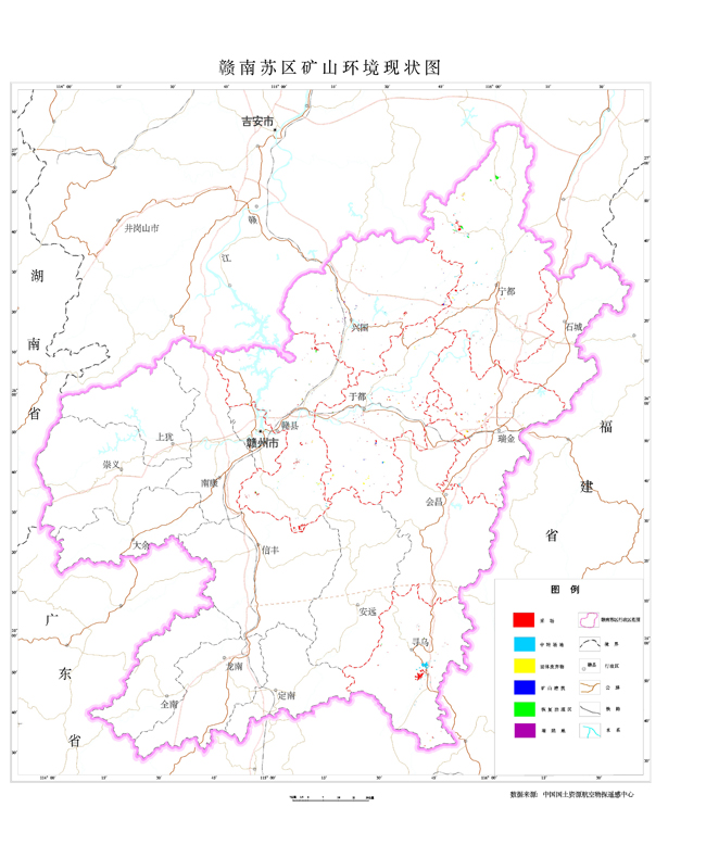 根据中国地质调查局南京地调中心“支撑赣州六县精准脱贫攻坚地质调查工作推进会”相关要求,资源遥感室组织完成了“赣南苏区矿产资源开发环境遥感监测”工作。在总结区域工作总体目标任务、各年度工作、资金、投入的实际工作与工作量及工作完成情况等情况的工作基础上,总结了2011年至2015年在赣县、宁都县、瑞金市、兴国县、寻乌县和于都县等赣南六县取得的矿业活动开采点(含违法开采点)分布情况、矿山地质环境状况等遥感监测成果,分析了相关成果转化应用情况及效益;利用最新的遥感数据,编制了赣南苏区高精度遥感影像图,完成了区域矿产资源开发环境的动态变化监测。编写了“赣南苏区矿产资源开发环境遥感监测成果报告”,编制了“赣南苏区矿产资源开发状况遥感监测图(1:100万)”、“赣南苏区矿山地质环境现状遥感监测图(1:100万)”,并按期提交到南京地调中心。