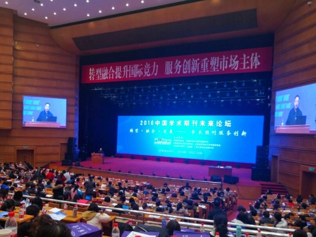 2016年11月22日—23日,由中国期刊协会、《中国学术期刊(光盘版)》电子杂志社有限公司等单位主办,以“转型、融合、发展——学术期刊服务创新”为主题的第二届“中国学术期刊未来论坛”在北京会议中心举行。来自全国期刊界的2300多名代表参加会议。中心情报期刊室《物探与化探》和《国土资源遥感》编辑部沈效群、李瑜、蒋实参加会议。本次论坛上发布了《2016年中国学术期刊国际引证年报》《2016年中国学术期刊国内引证年报》,公布了2016《最具国际影响力学术期刊》和《国际影响力优秀学术期刊》。