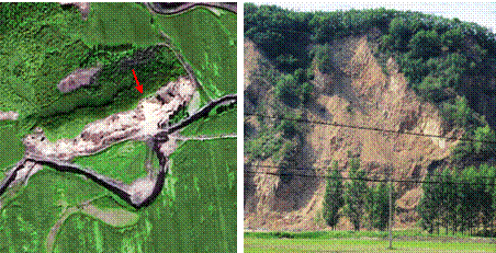 例如,黑龙江省哈尔滨市尚志镇长寿乡西北侧,1处人工开采矿山引起的滑坡,其周边发育大型崩塌,严重威胁农田及河道。