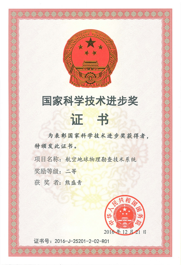 “航空地球物理勘查技术系统”成果主要依托“863”计划重大项目,由航空物探遥感中心牵头,以熊盛青教授为首,共计51个科研团队联合攻关、共同参与完成。获奖成果解决了新型航空重力仪原理等一批重大理论和原理性问题,攻克了航空磁力、电磁、重力等核心技术和装备研制的关键技术,研制出9种核心仪器和8种配套仪器,集成了6种航空物探单方法勘查技术系统;研制出支持二次开发的GeoProbe地球物理软件平台,集成了重、磁、电磁和伽马能谱参数同平台处理的地球物理数据处理解释系统,实现了规模化工程应用;集成了航空重/磁/遥感综合勘查系统等3套多方法综合勘查系统,创建了航空物探遥感综合勘查方法,形成了“空地一体化”快速找矿技术体系。共获得61项自主知识产权,已在全国地质矿产调查中全面推广应用,在辐射环境评价和军事等其他领域亦得到了应用。