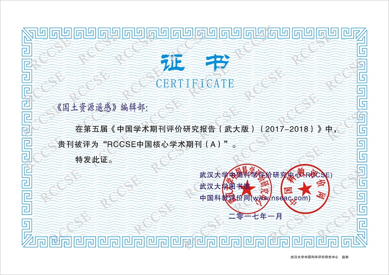 由国土资源部主管、中国国土资源航空物探遥感中心主办的《国土资源遥感》(Remote Sensing for Land & Resources)在第五届《中国学术期刊评价研究报告(武大版)(2017-2018)》中,被评为“RCCSE中国核心学术期刊(A)”。