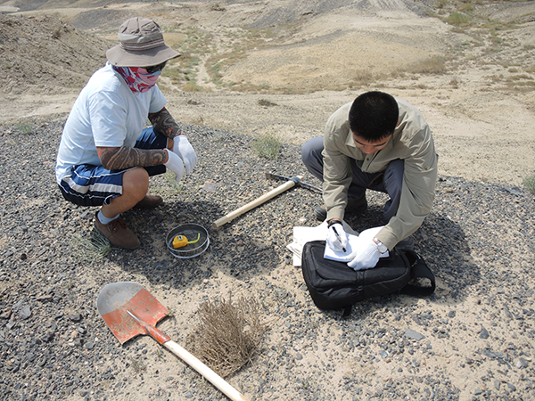 航空高光谱油气资源调查区位于准噶尔盆地北部的乌伦古坳陷带内,是西北地区“一带一路”建设沿线的重要油气资源远景储集区。航空物探遥感中心组织项目组成员,于2017年7月中旬至8月初对工作区开展了前期野外踏勘工作,定观测点31处,取土壤波谱样与岩石化学分析样品共计56件,行程路线达到240余公里,圆满完成了既定任务。