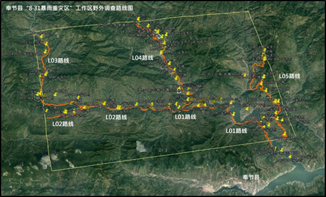 野外工作在完成室内地质灾害遥感解译的基础上开展,设计野外路线7条,其中奉节县“8·31暴雨洪灾”重灾区内5条,巫山县“大宁河河口”地区内2条,野外定点共计129个,超额完成预定的野外工作内容,调查结果满足项目要求。