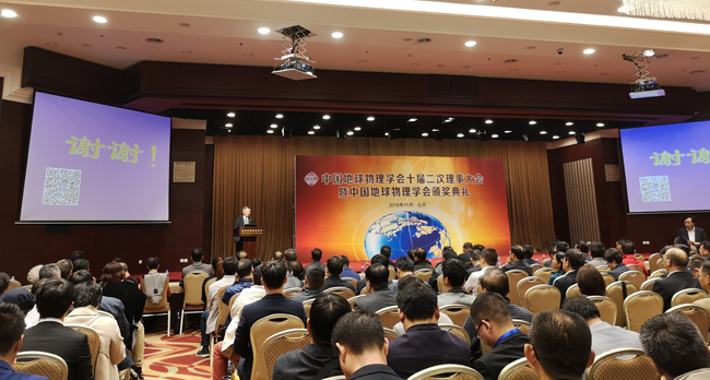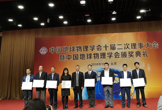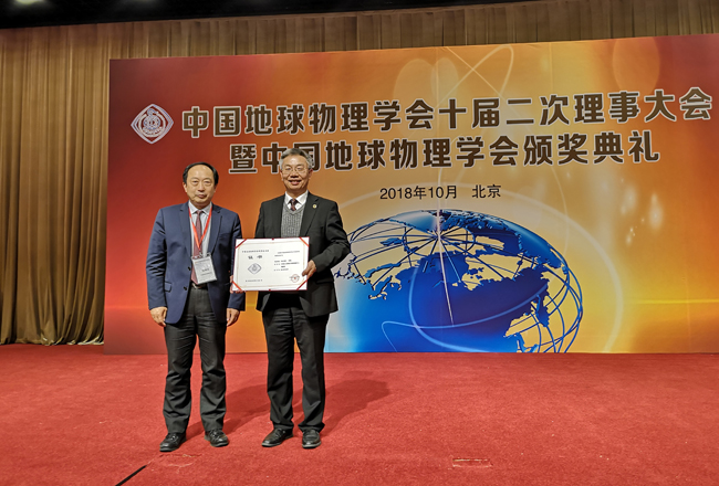 熊总为中国地球物理科学技术奖二等获得者颁奖