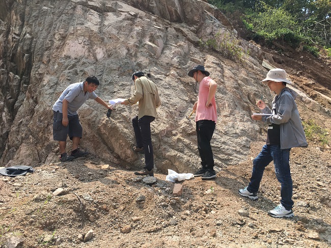在为期一个月的高流动性野外物性测量工作中,项目组共完成物性测量点179处,采集岩矿石标本525块,获取磁化率数据5370个、密度数据525个,基本掌握了区内各时代地层、岩浆岩和变质岩的物性规律。