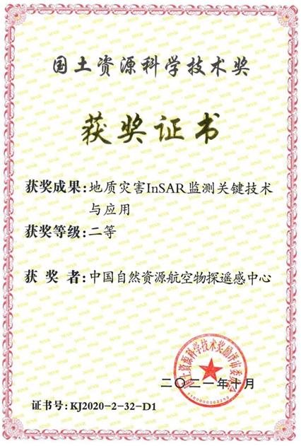 近日,由中国地质学会、中国土地学会、中国地质矿产经济学会联合评选的2020年度国土资源科学技术奖结果揭晓,由我中心牵头,中科院空天信息创新研究院、杭州师范大学等单位共同完成的《地质灾害InSAR监测关键技术与应用》荣获二等奖。