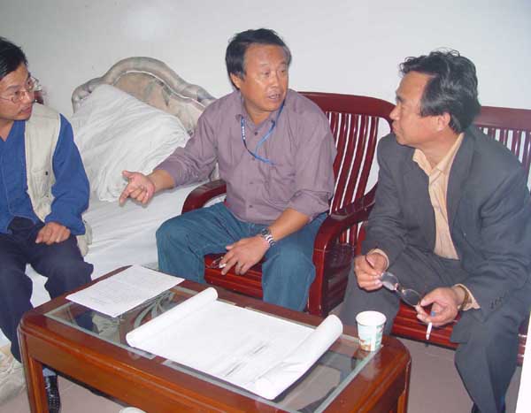 王书记(右一)在听取903队技术人员的汇报