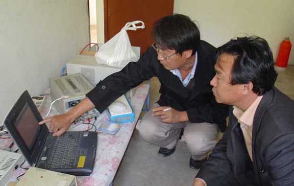 王书记和资料验收组成员陈 斌、王乃东同志,首先听取了903队队长李新弟、仪器负责叶挺明两位同志对前一阶段飞行测量概况、所获资料质量等工作情况的汇报,随后资料验收组按设计书的技术指标要求对903队所获取的空中和地面原始模拟记录、数据处理报告、航磁剖面图等资料进行了认真检查,903队的同志对资料验收组提出的技术问题做了说明和解答。资料验收组对该队所获资料的质量表示满意,并按照阶段性资料野外验收程序填写了相应的质量管理记录表格。