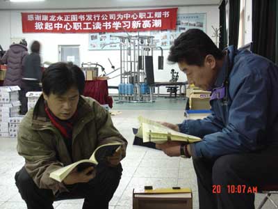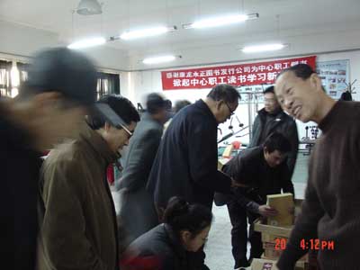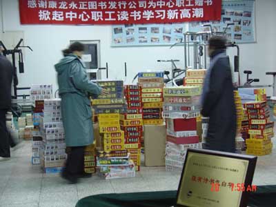 送猴年,迎鸡年。在辞旧迎新之即,航遥职工新年新举措,在中心职工会员中掀起了读书学习的新热潮,为使职工掌握更多的科学文化知识,陶野职工的思想操,用健康向上的新思想、新道德、新风尚充实职工业余文化生活。在职工中掀起爱读书、爱学习的热潮,邀请康龙永正图书发行公司为职工提供免费赠书活动,在短暂的二天时间里先后有890余名职工得到赠书,同时职工自己选购图书达 130册,他们用自己的实际行动落实了“三个代表”的重要思想,通过开展读书学习活动, 不断提高创建学习型、知识型组织活动新的内涵,职工会员同志们让我们在新的一年里使职工建家活动、中心精神文明建设不断向前推进。