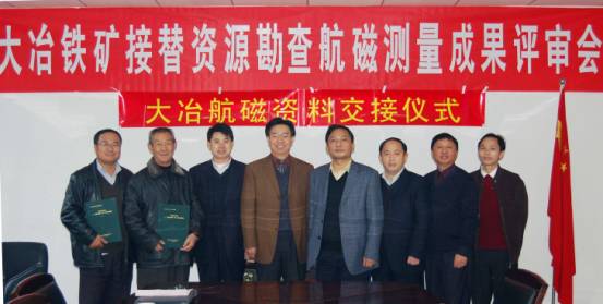 2006年11月,中国国土资源航空物探遥感中心将湖北黄石航磁勘查成果资料交到中南冶勘总局中南地质勘查院,标志着在国内首次使用硬架式直升机完成的全国危机矿山接替资源找矿项目-大冶矿区1∶1万高精度航磁勘查项目顺利完成。参加航磁勘查成果资料交接仪式的有:中国国土资源航空物探遥感中心副局长、总工熊盛青,物探部处长范正国和湖北大冶铁矿项目组负责人于长春;中南局副局长杨艺华;中南地质勘查院总工王泽华和危机矿山接替资源勘查项目部经理刘玉成等。