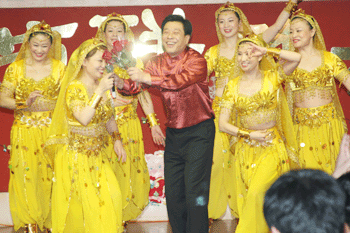 联欢会在节奏欢快、喜庆红火的《开门红》舞蹈中拉开帷幕。独唱、合唱、舞蹈、小品、歌伴舞、T台秀、轻喜剧等精彩不断,好戏连连。中心工会荆田的一曲《圆梦》唱出了对全体职工的祝福,祝大家在新的一年里好梦成真。企业部带来的男声小合唱《勘探队员之歌》、《啊,朋友》唱出了我们地质人的豪迈与热情,博得台下阵阵掌声。遥感部的小品《昨天今天 明天》向我们展示了航遥事业发展的昨天、今天和未来。物探部的歌舞表演《感恩的心》让我们重温了那份来自亲情、友情的感动。来自大厦物业的时装表演《T台秀》、街舞《青春涌动》让我们充分感受了年轻的活力,给我们带来了美的享受。在共青团带来的轻喜剧《新婚贺礼》中,五对新婚夫妇的闪亮登场和他们机智幽默却充满甜蜜的结婚感言为整个联欢会增添了浓浓的幸福和喜气。党委书记王殿琦与野外一线职工的现场连线情深意切、感人挚深,他们常年在外、坚守岗位、不畏辛劳、无私奉献的精神让我们备受感动和鼓舞。集体舞《美丽的心情》将整个联欢会推向了高潮,伴随着优美的乐声,王宝才副局长、中心全体领导和部分干部职工共计28人同台起舞,为我们共同演绎了一曲“盛世欢歌、爱我航遥、众志成城、共创和谐”的优美乐章。物业部的歌舞表演《快乐老家》把整个联欢会推入了欢乐、幸福、和谐的海洋。