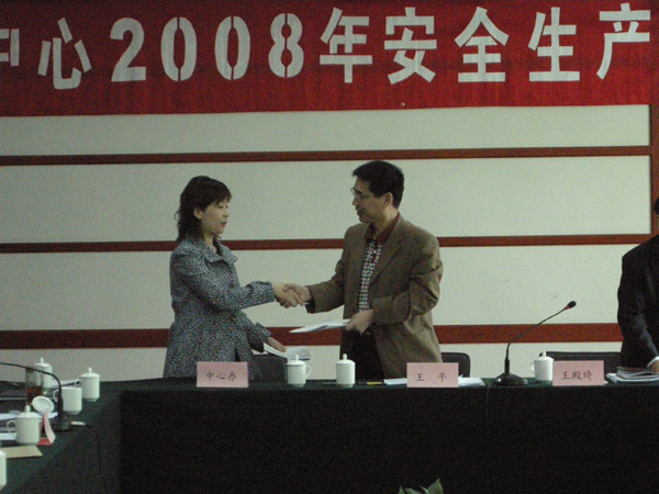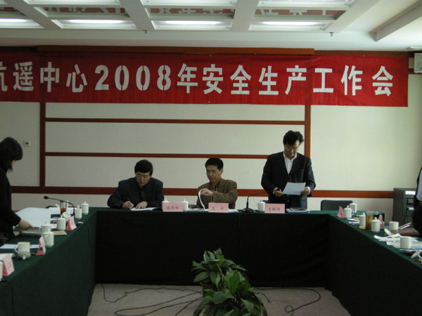 会议由王殿琦书记主持,会上中心安全生产主管领导胡尚英同志向大家传达了局2008年安全生产工作会议召开情况,传达了王宝才局长和赵奇主任在局安全会上的讲话精神,通报了中心2007年度安全管理工作考核结果,宣读中心2008年安全生产工作要点。2008年,航遥中心承担的各类国家专项、地质大调查项目和市场项目又创历史新高,安全生产工作面临很大的压力。为切实保障中心生产、科研任务顺利完成,中心将从“提高认识加强组织领导、强化落实安全生产责任制、加强安全生产规章制度建设、加大隐患排查治理力度消除安全隐患、加强安全生产宣传教育培训工作、抓好重点部位的安全生产管理”等六个方面入手,切实加强安全生产的管理工作。会上,王平主任与各部门一把手签订了《2008年安全生产目标管理责任书》。