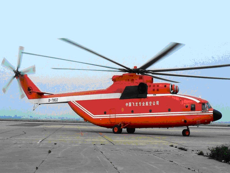 5月14日下午,飞龙专业航空公司接到民航局调度命令后,立即将正在加格达奇执行护林防火任务的米-26直升机调往地震灾区,5月17日到达四川广汉机场,展开运送救援物资和受灾群众任务。米-26直升机由俄罗斯罗斯托夫直升机有限公司生产,是世界上最大的直升飞机,是直升机中的“巨无霸”,最大载重可达20吨。
