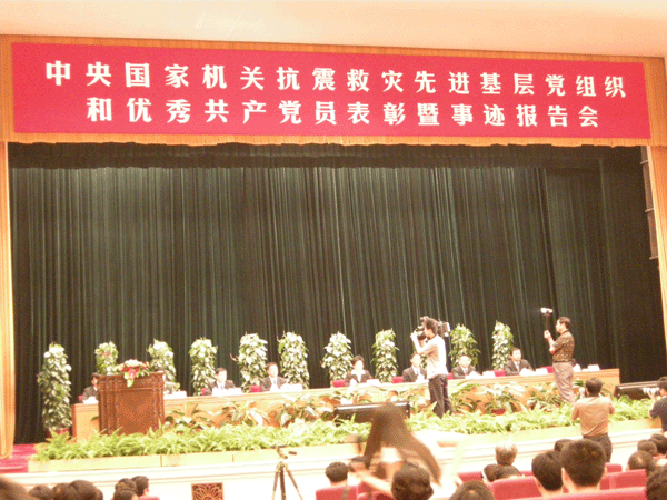 来自公安部、民政部、铁道部、交通部、水利部、卫生部、中国民航局、中国地震局的8位同志分别报告了抗震救灾的感人事迹。
