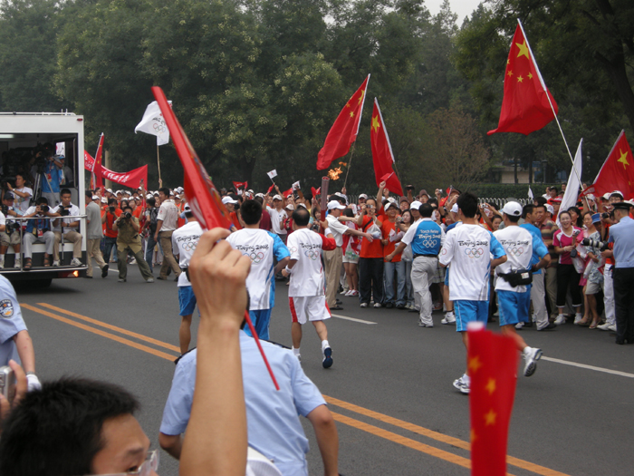 6日一大早,满怀期待的团员青年们早早的起来,共同赶往指定地点。经过一个多小时的等待,奥运圣火传递开始。当手持祥云火炬的奥运火炬手缓缓经过大家面前时,充满激情与喜悦的人们顿时沸腾起来,爆发出雷鸣般的欢呼声。大家一起挥动着手中的旗帜为奥运喝彩,“中国加油!北京加油!奥运加油!”的声音一声高过一声,欢乐的场面表现出亿万中国人民对奥运的期盼和热情。
