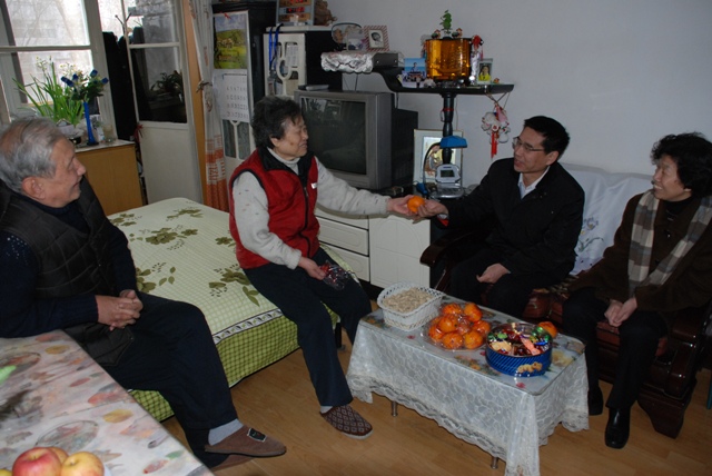 从元月中旬至春节前夕,中心先后看望慰问了77位离退休老领导、老同志,为他们送去了党和中心的关怀和新年的祝福。春节前夕,中心领导分别带领中心相关职能部门的负责同志看望慰问了中心老领导、老专家等。离退休中心的工作人员还赴燕郊、通州、昌平、城区、医院和大院内慰问和看望了其他老同志和困难老职工。慰问过程中,领导们向老同志们介绍了中心2008年各项工作取得的成绩,诚心征求他们对中心工作的意见和建议,关心他们的身体健康和生活上存在的困难,耐心做他们的思想工作。中心的关怀更加增强了老同志们安度晚年幸福生活的信心。