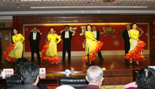 团拜后进行了历时2个多小时精彩的文艺演出,演出大厅座无虚席,歌舞、表演、游戏、抽奖等丰富多彩的节目让老同志们目不暇接,笑声、掌声不断,惊喜连连,充满了节日的喜庆气氛。