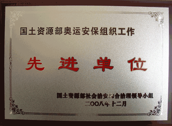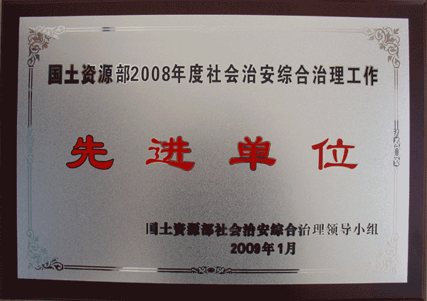 近日,我中心荣获2008年度国土资源部社会治安综合治理先进单位和奥运安保组织工作先进单位荣誉称号,物业管理部主任赵玉刚同志荣获2008年度国土资源部社会治安综合治理先进工作者称号,中心已连续多年荣获此荣誉。