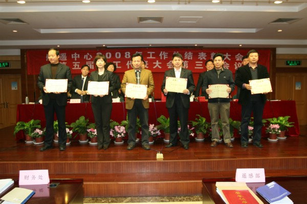 大会还举行了颁奖仪式。中心领导分别为荣获“2008年度先进单位”的遥感部和北京奥运大厦物业管理中心,荣获“2008年度表扬单位”称号人事处、物探部、中心办公室、总工程师办公室、财务处和物业管理部6个单位,荣获“2008年度先进基层单位”称号物探部空勤、物探部综合研究室、遥感部航空摄影室、遥感部环境与灾害遥感所、物业部卫生所、物业部配电室和企业部北京天龙真彩印刷技术中心7个室、组和荣获“2008年度优秀职工”称号的周坚鑫等70名职工颁发了奖状和奖金。
