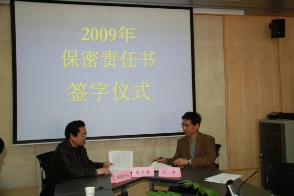 会上,中心副主任王凯传达了《地调局2008年安全生产工作总结和2009年工作安排》,通报了地调局2008年安全生产责任制考核结果。中心副主任胡尚英作了《航遥中心2008年安全生产工作总结和2009年安全生产工作要点》报告,通报了中心2008年度安全生产管理工作考核结果。中心副主任方洪宾作了《2008年保密工作总结和2009年保密工作作要点》报告;中心党委书记王殿琦作了《2008年计划生育工作总结和2009年计划生育工作要求》报告。会议还举行了2009年安全生产责任书、保密责任书、人口和计划生育目标管理责任书签字仪式。