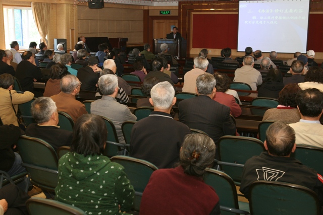 胡副主任在报告中对2000年以来中心医疗费来源和使用情况进行了介绍,对北京市公费医疗管理办法的相关精神和中心新的医疗管理办法的修订目的、过程、修订的主要依据、主要内容等进行了详细的讲解,特别对有关离退休职工就医、医药费报销等条款进行了认真细致的解释,并针对一些老同志现场提出的问题依据北京市公费医疗管理办法进行了解释。通报会结束后,一些老同志还根据个人的情况进行咨询,胡副主任、刘淑珍同志对此一一作了认真耐心的解答。