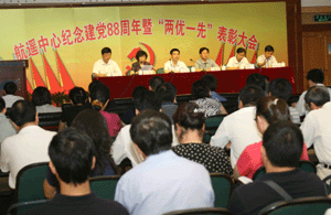 6月29日上午,航遥中心庆祝建党88周年暨“两优一先”表彰大会在中心五层多功能厅隆重召开。大会由中心主任王平主持,党委书记王殿琦讲话。中心在家的班子成员,在职和离退休党员以及入党积极分子200余人参加大会。