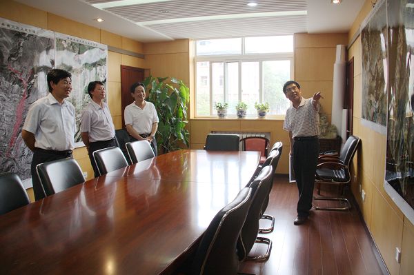 在王平主任等中心领导的陪同下,王学龙副局长、李金发副局长一行先后参观了中心展室、航空摄影处理室、航空物探遥感数据中心、航空物探仪器室、航空遥感仪器室、矿山动态监测中心等。之后,双方在243会议室进行了座谈。王平主任对中心概况、业务建设及职能履行、年度任务目标及预算完成、党建、精神文明建设及党风廉政建设、中心“十二五”规划、中心面临的主要困难及建议等几部分内容进行了详细汇报。汇报期间,双方进行了简短的交流和讨论。