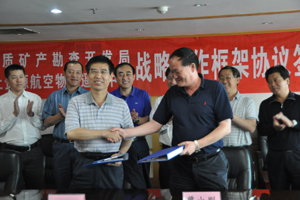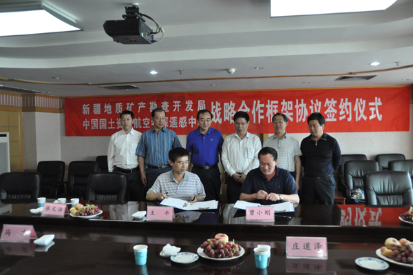 会后,王平主任代表中心与新疆局一区调大队、新疆局物探队、新疆局地质七队负责人签署2010年地面异常检查合同书。新疆地矿局副总工程师庄道泽、新疆局一区调大队队长王春雷、新疆局物探队队长王小兵、新疆局地质七队队长王晓刚、航遥中心周坚鑫、张文志、何靖扬等参加了签约仪式与业务交流。