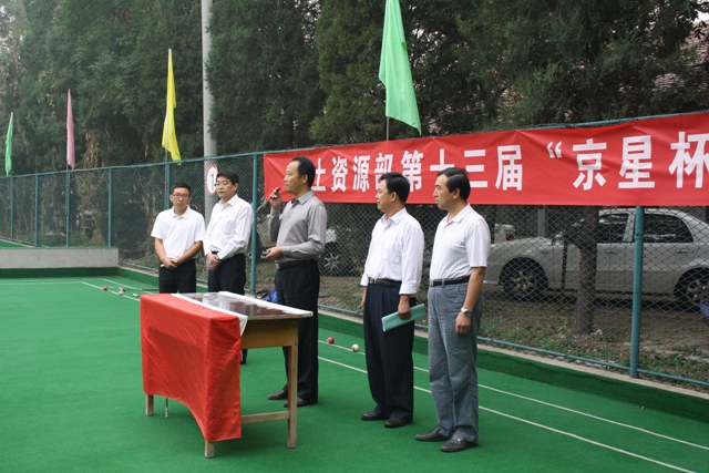 门球传友谊,夕阳映彩虹。9月26日,清华大学门球场内彩旗招展,热闹非凡,由部离退休干部局主办、航遥中心承办的国土资源部第十三届“京星杯”老年门球赛正在这里行。部机关和直属事业单位共15支代表队的180余名运动员参加了比赛。部离退休干部局局长吴国华、副局长沈学军、中心纪委书记李知用等领导到场致辞并观看比赛。