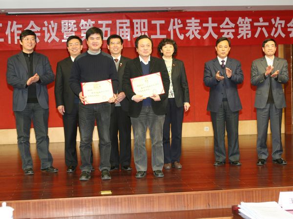会议还举行了颁奖仪式,中心领导为获奖部门和个人颁发了奖状并且与获奖部门代表及先进个人合影。(中心办公室工会)