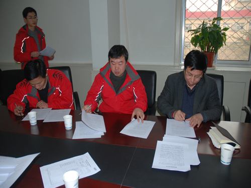 最后,胡尚英副主任授予两个野外队“中国地质调查局航遥中心”的旗帜。物探部主任周坚鑫与野外队队长签订了安全生产责书、安全应急预案和保密、廉政责任书。