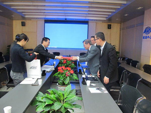 会上,王平主任对外宾的到访表示欢迎,同时就仪器的性能技术指标能否满足中国海域水深的测量要求,以及外方仪器出口限制对合作影响等涉及具体合作的问题进行交流;葛晓立处长就购置仪器报价问题做了详细咨询。Optech公司总裁及销售经理就上述问题通过PPT进行了详细介绍,尤其对激光水深测量仪的采样精度、分辨率、应用范围等性能指标给出了具体测试数据。经过深入交流探讨,双方初步达成了合作意向,对正式签订合同奠定了良好的基础。最后,王平主任向Optech公司来访人员赠送了中心纪念品。