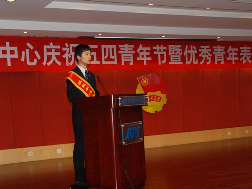 为纪念五四爱国运动94周年, 5月7日上午,中心在五楼多功能厅隆重召开了“庆祝五四青年节暨优秀青年表彰大会”。中心主任王平、党委书记温国勇、副主任胡尚英、副主任方洪宾、纪委书记李知用以及各部门的领导同志参加了会议,与全体团员青年共同庆祝五四青年节。