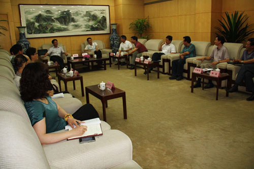 6月18日下午,南京地调中心主任曲亚军带领南京地调中心财务处、人事处、装备处一行六人来我中心考察,王平主任、温国勇书记、熊盛青副主任、李知用书记接待了客人,中心办、人事处、财务处和总工办领导参加了座谈会。