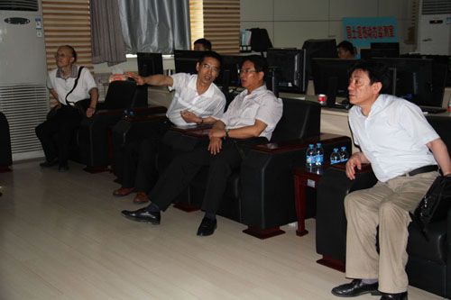 王平主任还陪同客人参观了中心展室、国土资源遥感动态监测室和航空物探仪器室。