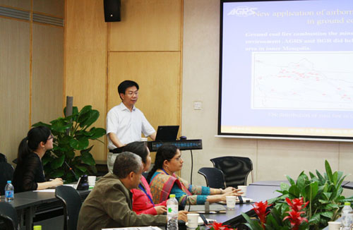 6月21日上午,“2013年发展中国家地质矿产管理研修班”一行到访中心进行参观和培训。此研修班由来自亚、非、拉十几个国家的近20名地质矿产管理官员组成。中心副主任、总工程师熊盛青在234会议室会见了到访学员并应邀为其授课。中心办公室杨蓓主任、科技外事处葛晓立处长以及物探部和科技外事处的相关人员热情接待了到访外宾。