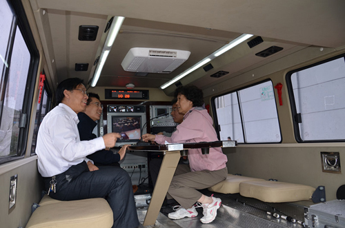 中心检查组一行抵到沽源后,即刻汇同无人机遥感野外作业人员,召开专题座谈会,对当前无人机遥感存在的问题和发展进行了深入研讨。并观看了油动无人机、电动无人机、四旋翼飞机的起飞、作业、降落全过程,登上无人机遥感应急通讯车,观看无人机飞行空中实时拍摄视频、矿山执法车实时视频以及与中心矿山监测机房实时视频连通等系列飞行、传输、通讯演练,仔细询问了每一个细节。随后,检查组一行对照无人机获取的基地高清晰航空遥感影像图,前往基地进行了细致考察和地形探测。中心检查组对目前无人机遥感取得的成绩用“大大超乎想象”给予了高度充分肯定。