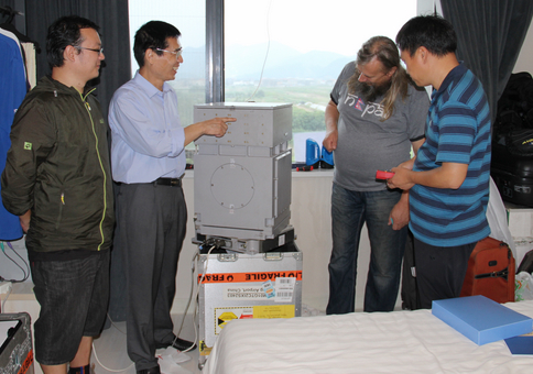 野外队驻地在舟山第五大岛朱家尖,与普陀山机场同属一岛。王主任一行来到901队,受到了野外队员的热烈欢迎。此时,正值901队请来了俄罗斯工作人员谢尔盖,谢尔盖此番前来是对重力仪器进行检查维修。王主任与谢尔盖进行了愉快的交谈,并共同检查了仪器维修情况。
