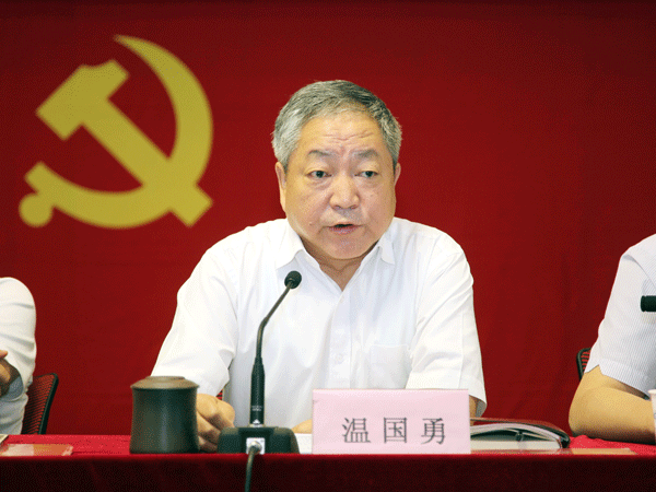 会议最后,中心党委书记温国勇首先代表党委向全体党员和干部职工,特别是工作在一线的同志致以亲切的问候,向受表彰的“两优一先” 先进典型致以衷心的祝贺。温书记指出,加强党的作风建设,严明党的纪律、严肃党的组织生活是党的十八大以来党的建设的主脉络。他围绕践行“三严三实”要求,严肃党的组织生活,扎实推进各项工作的主题提出三点要求。一是要扎实推进“三严三实”教育,持续加强党员领导干部的作风建设,确保取得实效。他指出要对专题教育的必要性和重要性要有清醒的认识,要认真掌握“批评与自我批评”这一专题教育的重要方法,同时要认清此次专题教育的目标。二是要严肃党的组织生活,进一步强化规矩意识和纪律意识,努力把各级党组织建成群众的领头人、开路人和“主心骨”。要认识到组织生活制度的本质,要懂规矩守纪律,同时要着力解决突出问题。三是要聚焦“两重一主”进一步增强责任意识和担当意识,圆满完成各项目标任务。要投入全部精力,确保“两重一主”任务圆满完成;要发挥担当精神,确保各项目标任务完成;同时他特别要求党员领导干部要发挥带头作用,要用“两重一主”目标任务的完成情况和“三严三实”的成效来考核评价党员领导干部。他号召全体党员干部们凝心聚力,为完成今年的目标任务共同努力。