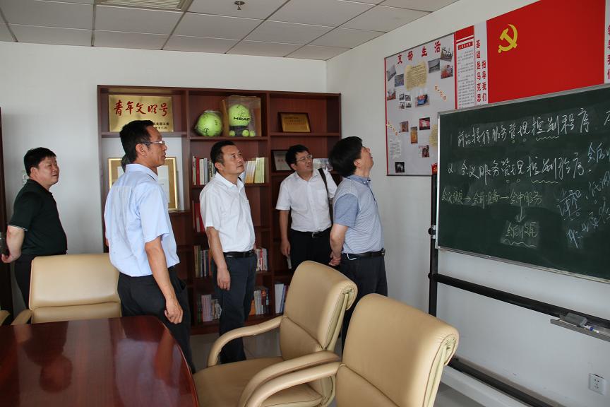 7月22日下午,中央国家机关工委信息中心主任徐成涛等三人到航遥中心调研基层党建工作,国土资源部直属机关党委纪委书记孟轩、地调局直属机关党委组宣处长李帮陪同。
