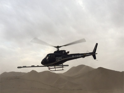 在敦煌地区直升机装机期间,户外机坪的沙漠热浪滚滚,温度达到50度以上,强烈的紫外线让人感到皮肤灼热难熬,但是为了尽快完成装机调试工作尽早开始飞行,全体队员连续7天从天亮进场一直忙到天黑,其间肖刚毅被热气冲击的流鼻血,蒋久明持续几天热伤风,郭亮经常大汗淋漓,大家都顶着及其恶劣的高温酷暑,团结协作,克服困难,相互鼓励,终于完成了装机调试任务以及开工飞行前的准备工作。