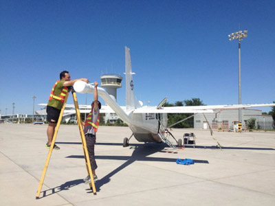 8月17日,一架装载有航空重磁综合测量系统的Cessna208B型飞机从克拉玛依机场起飞,飞向准噶尔盆地的上空,开始执行《准噶尔中西部航空重磁综合调查》子项目第一架次飞行。首次飞行共5小时10分,完成工作量715.8测线千米,各项指标符合规范和设计书要求。