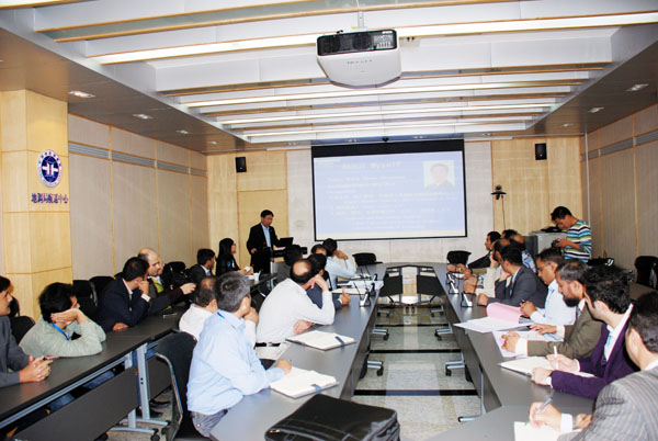 熊总对研修班一行表示热烈的欢迎,授课内容以航空物探技术方法、软硬件研发及航空物探地质应用成果为主。熊总从原理到应用,深入简出地向学员们全面展示了中心航空重力、磁力、电磁、放射性技术的研究水平及应用成果。除此以外,熊总还大致介绍了中心遥感技术应用于基础地质调查、矿山环境监测及各类突发地质灾害的相应成果。授课结束后,学员们提出了近20个专业技术问题与熊总现场交流,互动频繁,气氛热烈。在熊总表示非常愿意并欢迎巴基斯坦与中国合作,利用航空物探技术在巴国开展矿产资源调查时现场爆发出热烈的掌声。