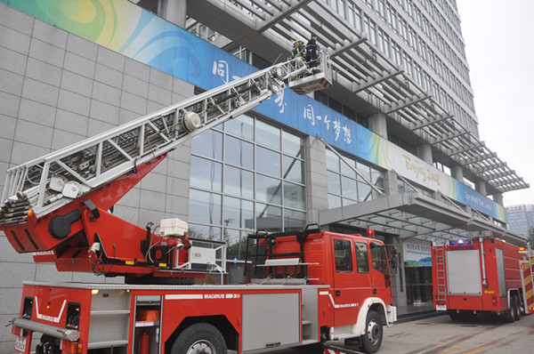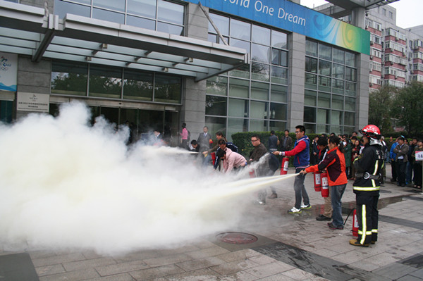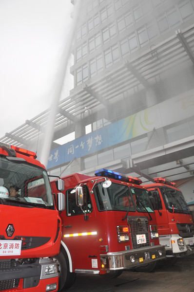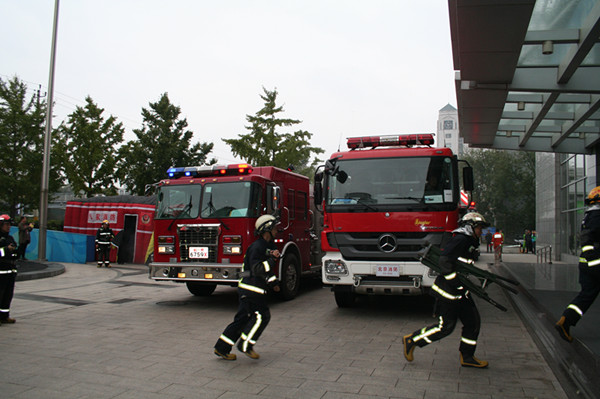 2015年10月21日上午10时,随着一串急促的警报声,掀开了奥运大厦一年一度“119”消防演习的序幕。本次演习,海淀区八家消防中队动用消防指挥车、破拆车、云梯车、美国大力水枪车、充气式火灾体验仓参与演习,演习过程紧凑有序,十分逼真。