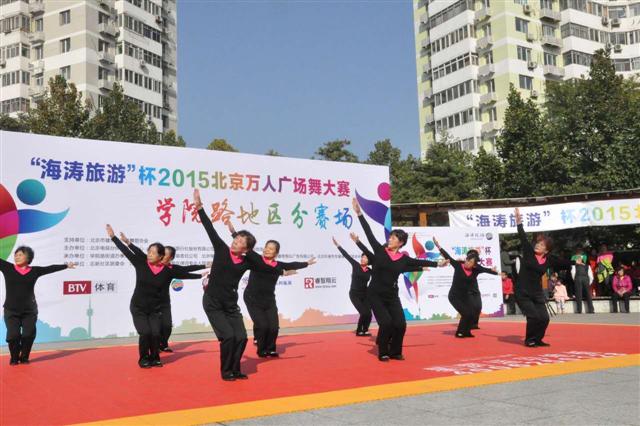 为丰富中心“敬老月”活动内容,促进“我运动、我健康、 我快乐”主题活动的深入开展,支持与引导离退休老同志广泛参与各种有益身心健康的文体活动。10月23日下午,离退休中心组织老年健身操表演队参加由北京电视台体育中心、学院路街道办事处、北京电视台《快乐健身一箩筐》栏目组等单位共同承办的“海涛旅游”杯2015北京万人广场舞大赛活动。来自学院路地区的29个群众业余表演队近350人参加了比赛。